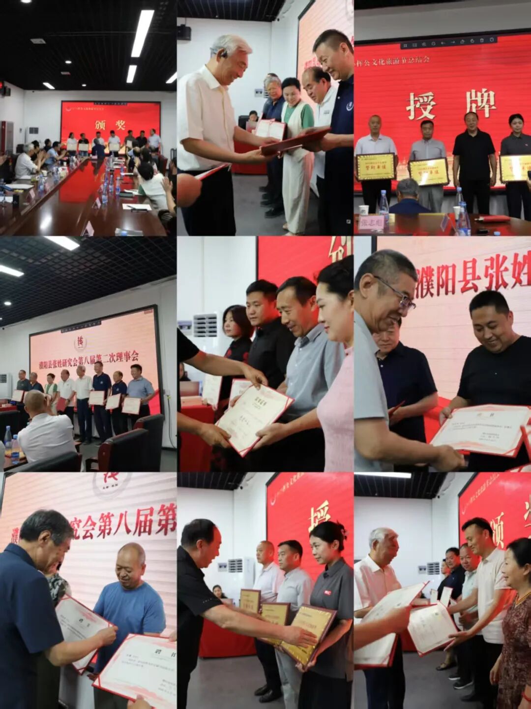 河南省、濮阳市、濮阳县张姓研究会联合发布表彰决定,张锦印、张礼杰、张明功等领导向21 名先进个人颁发证书,张建国向北京三十寻一味有限公司、河南省雪汇食品有限公司、濮阳百鸿商贸有限公司等赞助单位授予奖牌,致谢其为活动提供的物质保障。会议全票通过《关于成立各职能部门和各职能部门主要负责人的议案》,新设立的职能部门将以专业化、规范化运作推动研究会工作升级。现场向各部门负责人颁发聘任证书,为张姓文化事业发展筑牢组织基础。